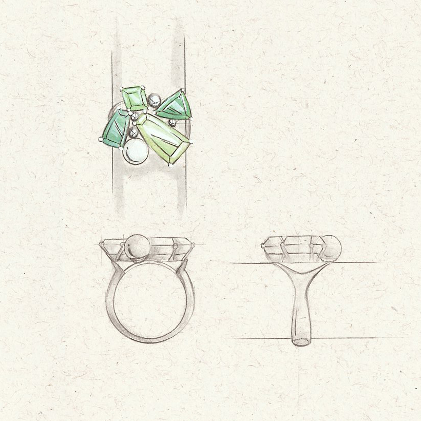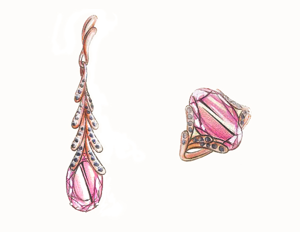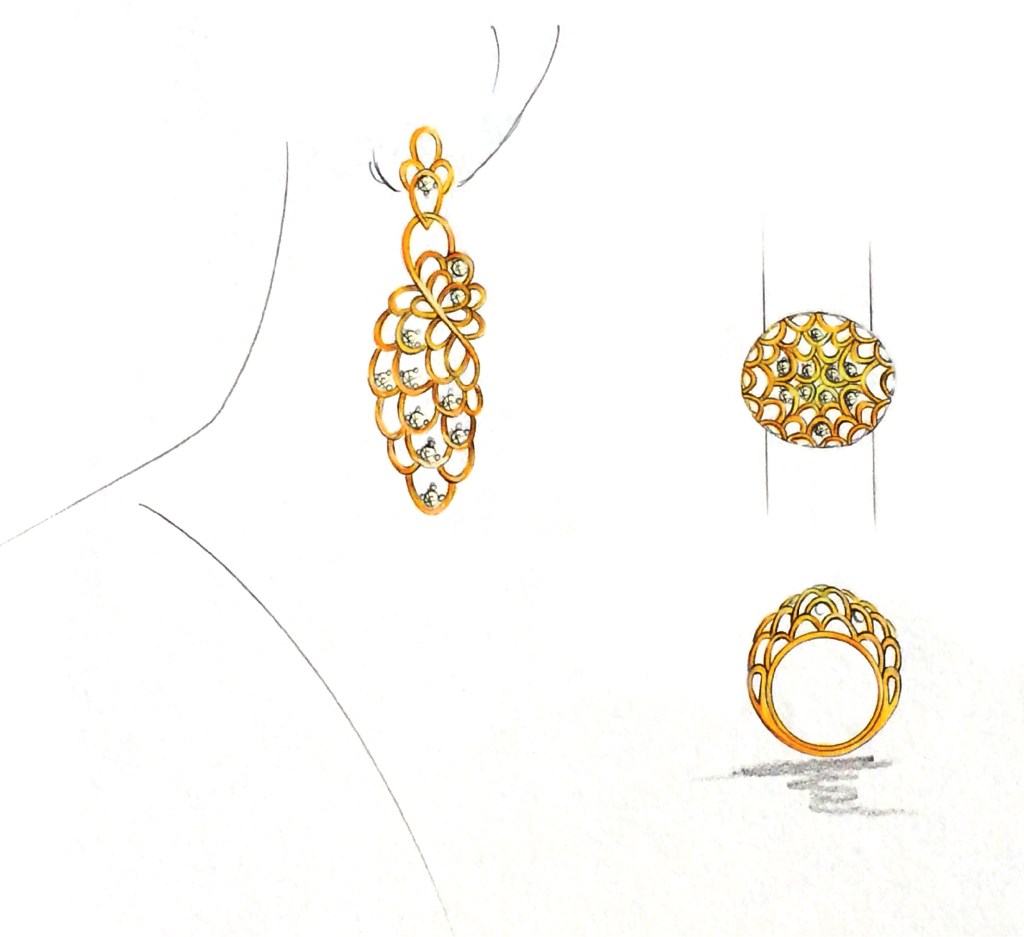 Drawing jewelry starts with a spark of inspiration, which is translated into detailed illustrations.